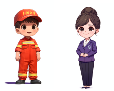 “小安”“小微”是“平安微笑蚌固路”文化品牌下的衍生形象,寓意平安與微笑,代表著S101省道蚌固路平安出行與窗口微笑服務。“小安”穿著橙色的公路養(yǎng)護工裝,干練且富有活力?!靶∥ⅰ鄙碇{紫色職業(yè)裝,胸前佩戴“平安微笑蚌固路”胸章,專業(yè)且溫和。