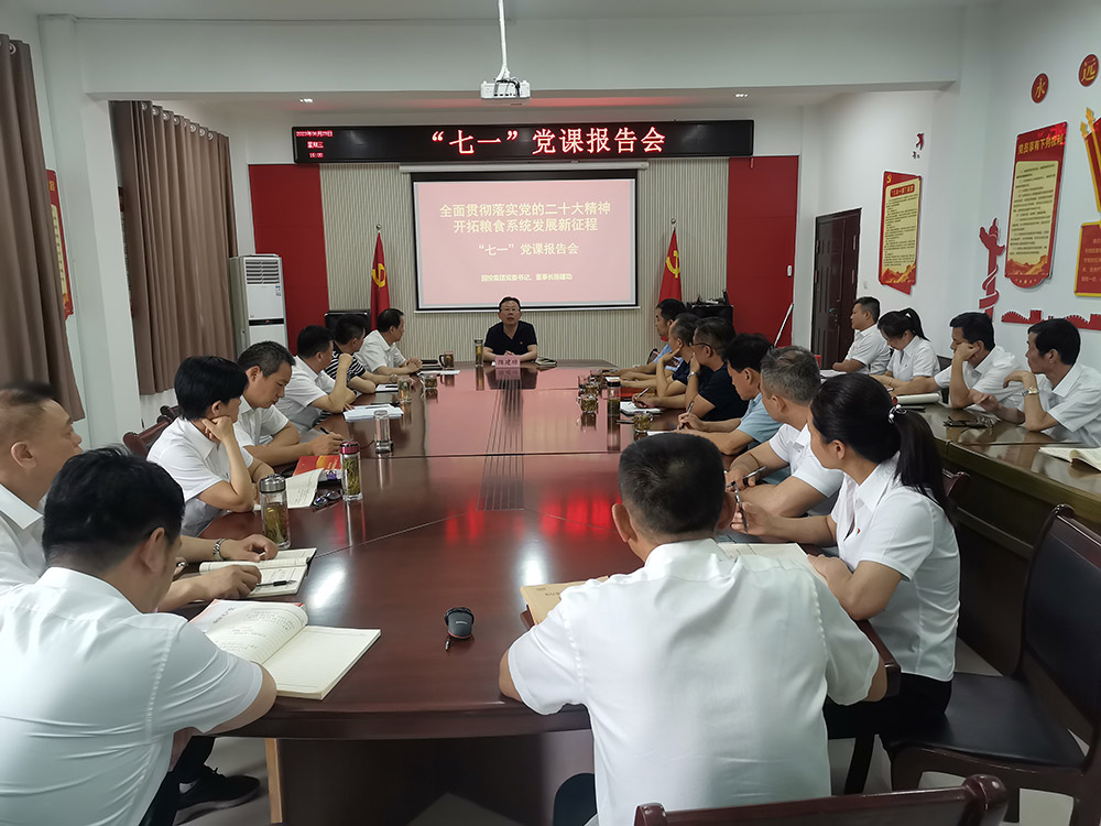 黨課報(bào)告會(huì)上,陳建功以《全面貫徹落實(shí)黨的二十大精神,開拓糧食系統(tǒng)發(fā)展新征程》為題,從“沒有共產(chǎn)黨就沒有新中國(guó)”“黨的二十大報(bào)告學(xué)習(xí)體會(huì)”“國(guó)控集團(tuán)的發(fā)展前景”“糧食集團(tuán)組建與展望”四個(gè)方面進(jìn)行了詳細(xì)闡述,為全體黨員干部上了一堂生動(dòng)的黨課。